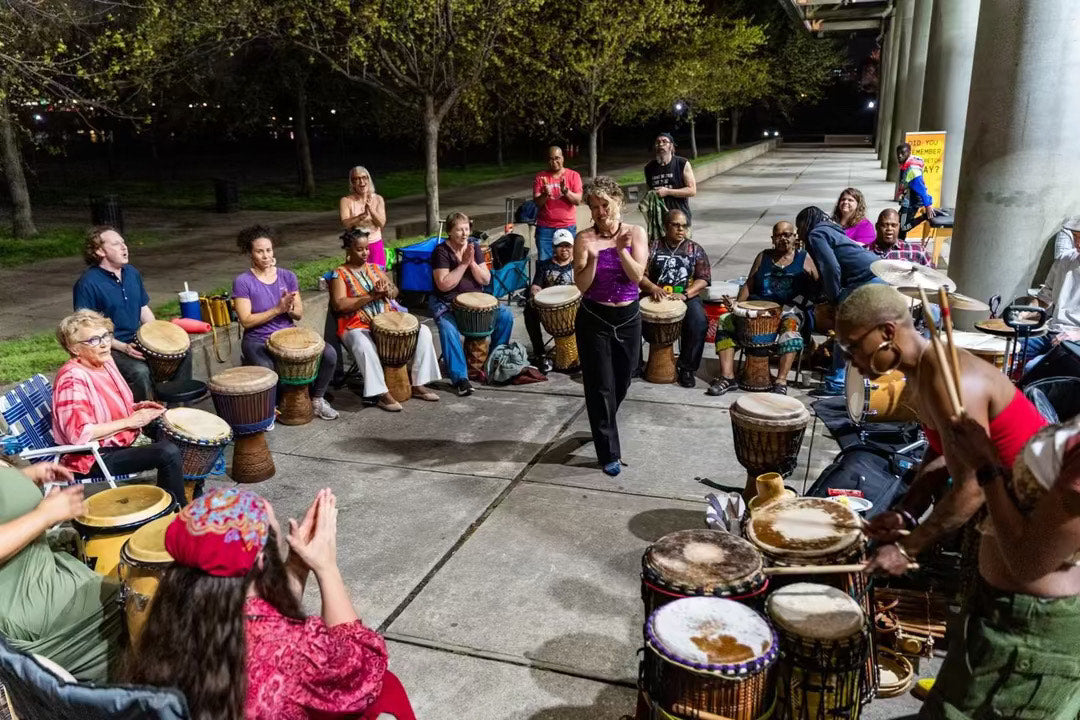 The Drumlady (Kristen Arant) is a performing artist, multi-instrumentalist, song writer, arranger, activist and educator working to empower diverse, intergenerational communities through joyful, accessible instruction in West African drumming, percussion & song.